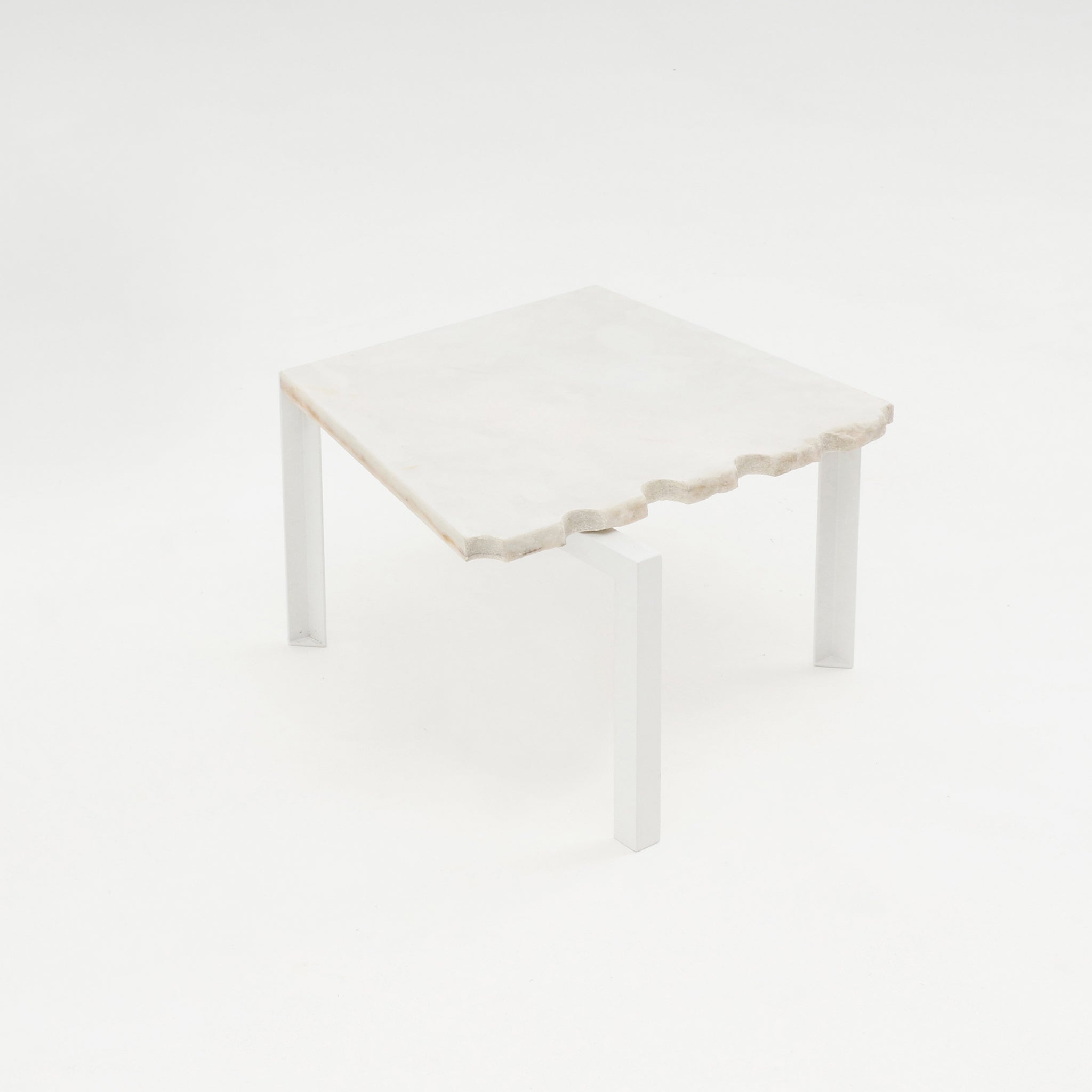 Issues of sustainability concerning the reuse of the marble slabs deemed useless for conventional use are just as much integrated into “Petite table d’angle” as the traces on the materials which bear witness of the extraction and further manufacturing processes, because they remain, just like the different grains suggesting the country of origin, as an image and a history.