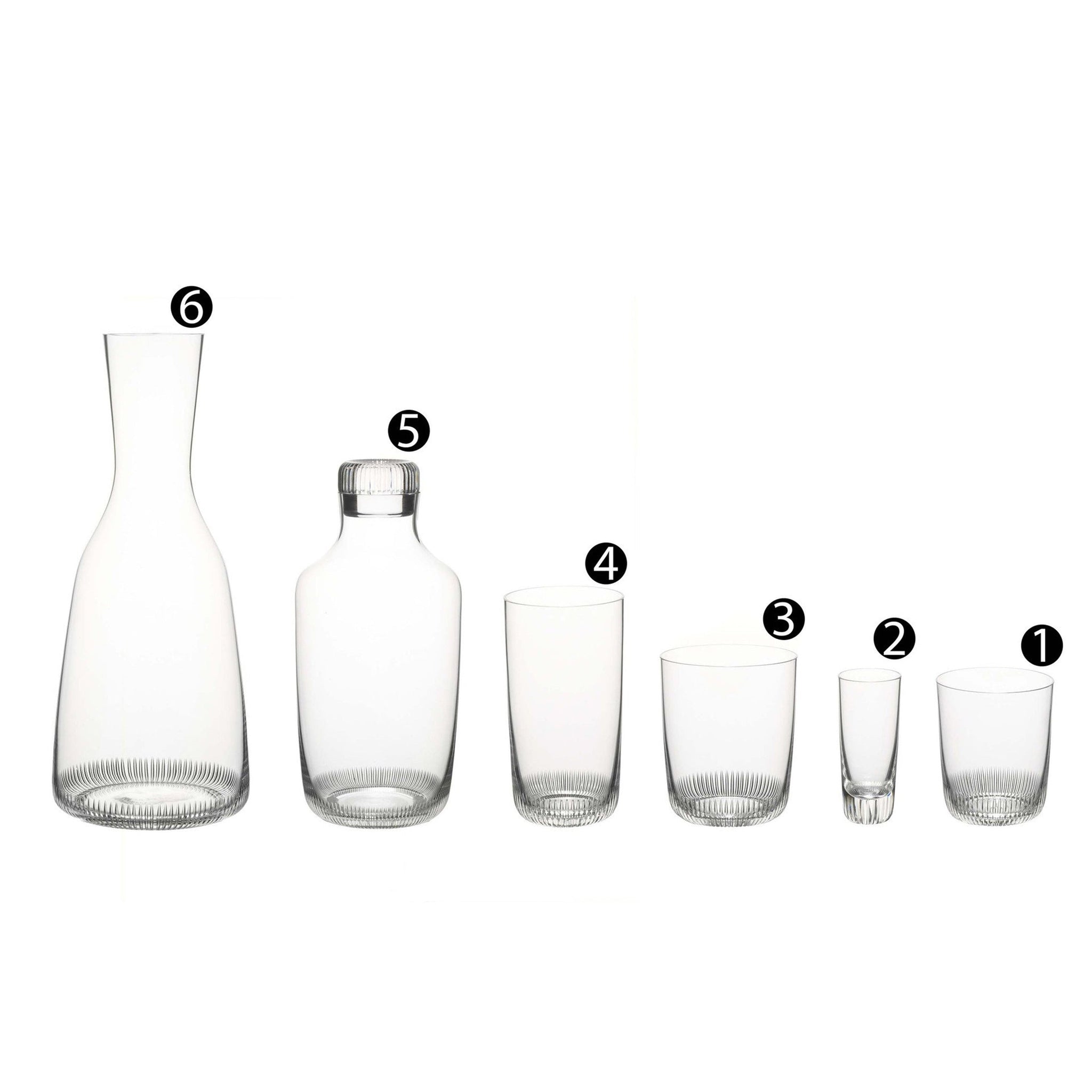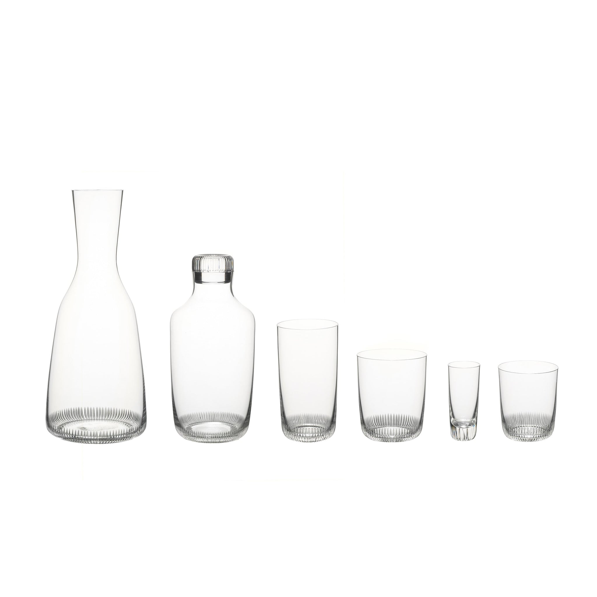 The italian Marco Dessi, designed a series which should attract for joyful everyday use. A rather technical looking design comes to life, if it is produced by skilled craftsmen. A special lamella cut has been developed, which should suggest a technical aesthetic and functionality. Highest importance is assigned on the haptic pleasure when drinking from the glass - literally the "grip".