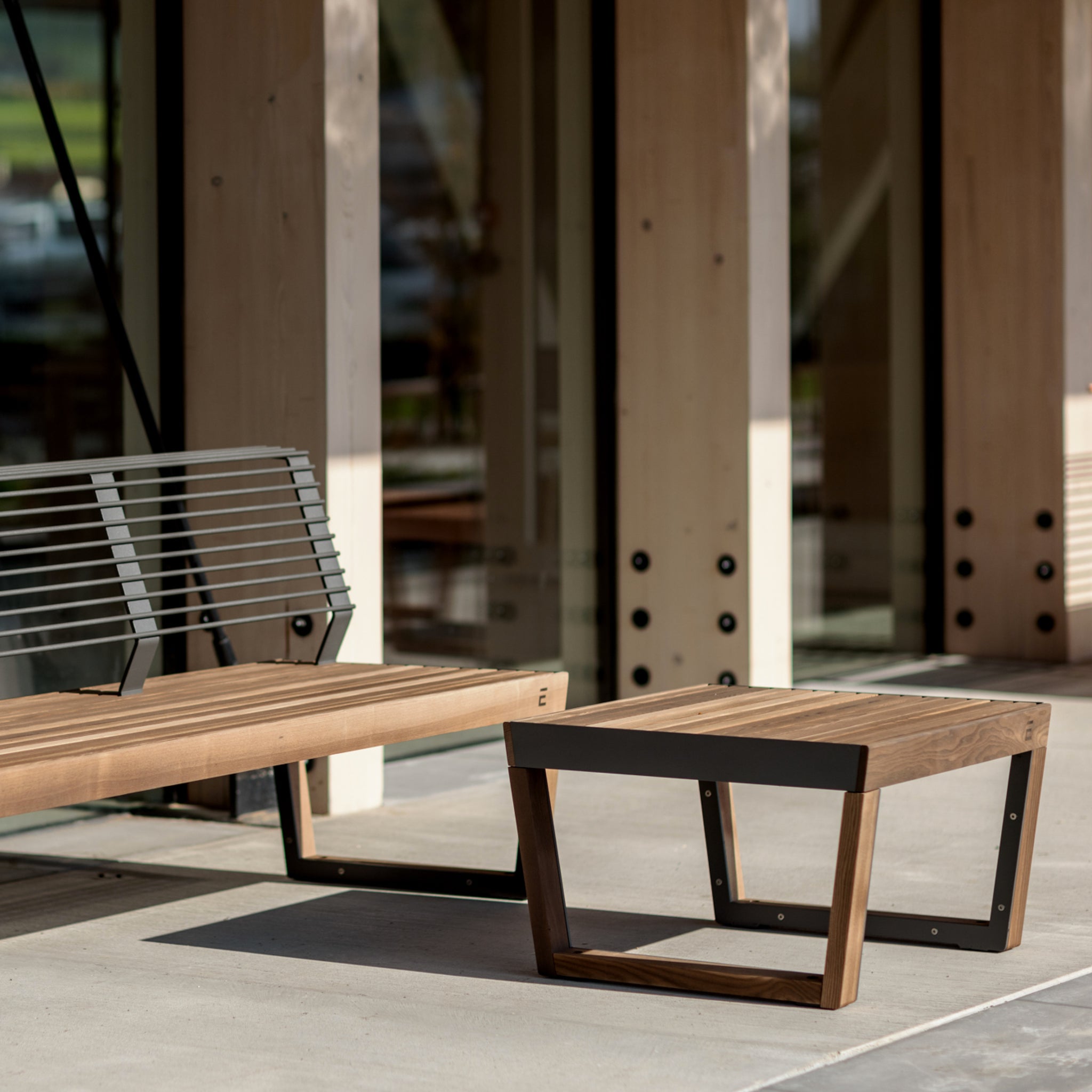 BARKA PUBLIC is part of Egoé's street furniture collection which is anchorable to stand harsh treatment. The steel elements of frame, back and armrest consist of corrosion-protective zinc and powder coating. See datasheet for available RAL finishes. The steel elements come in a fine matt finish. The wooden slats are made of solid wood and come in two variations: tropical Jatoba wood or European thermos-ash.