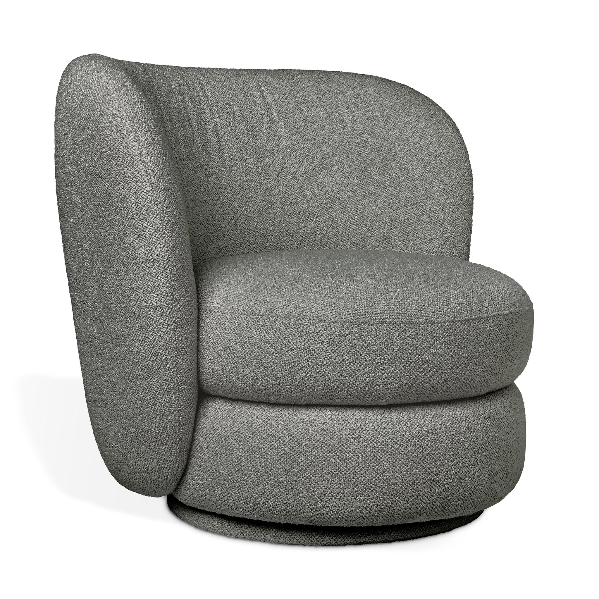 Whether you’re seeking a cozy place to unwind or wanting to add some understated glamour to your living room, the Forme Swivel Chair checks each box with style. Designed in a nubbly bouclé fabric, this elegant design brings both textural warmth and an of-the-moment aesthetic to your decor. Forme rotates smoothly around its axis, allowing it to adapt to the dynamic of the space it inhabits. A high back and sculptural round seat emphasize the cocoon-like shape for a unique perch that will become a charming focal point in any room. Arrange as a standalone accent chair or add another to create a striking pair.