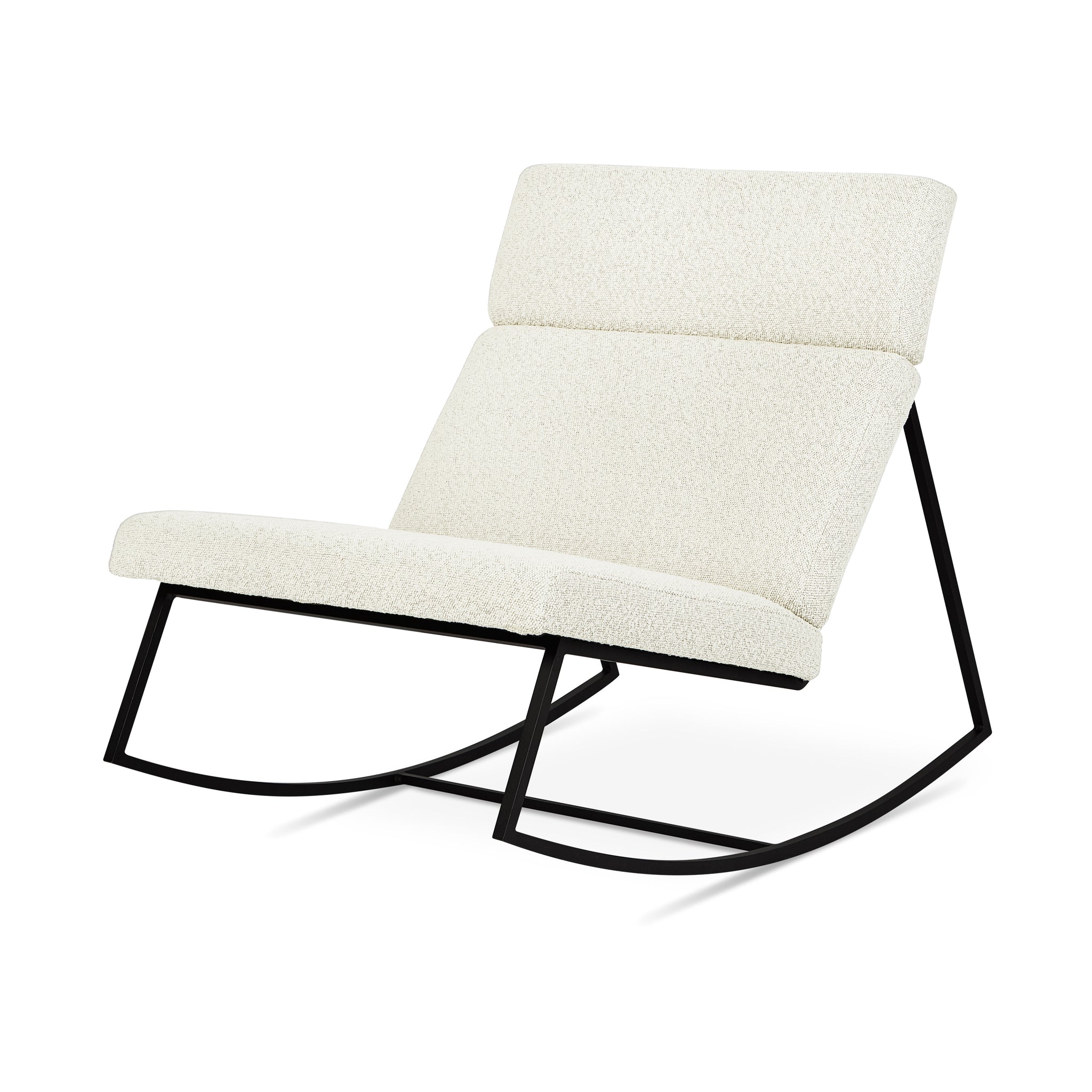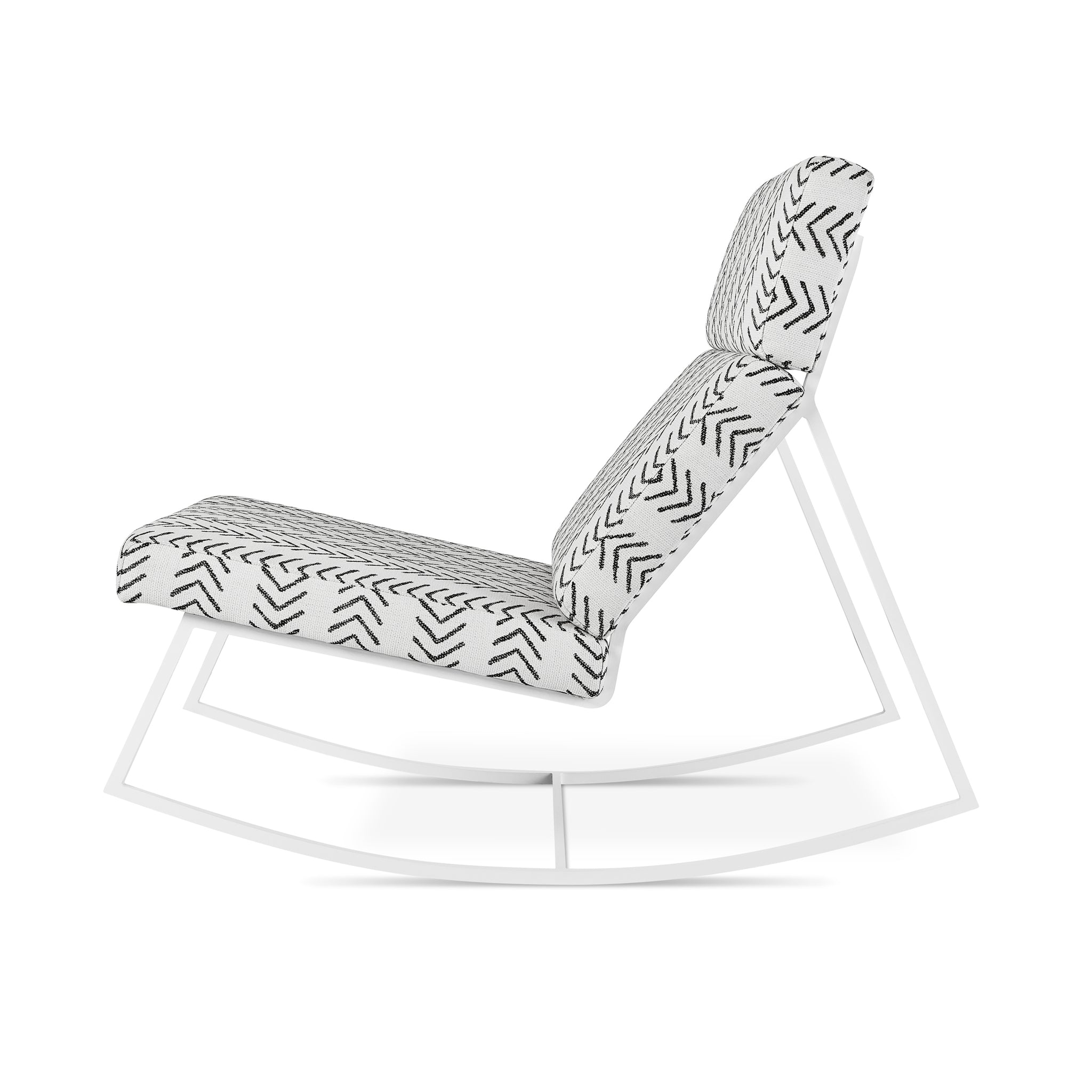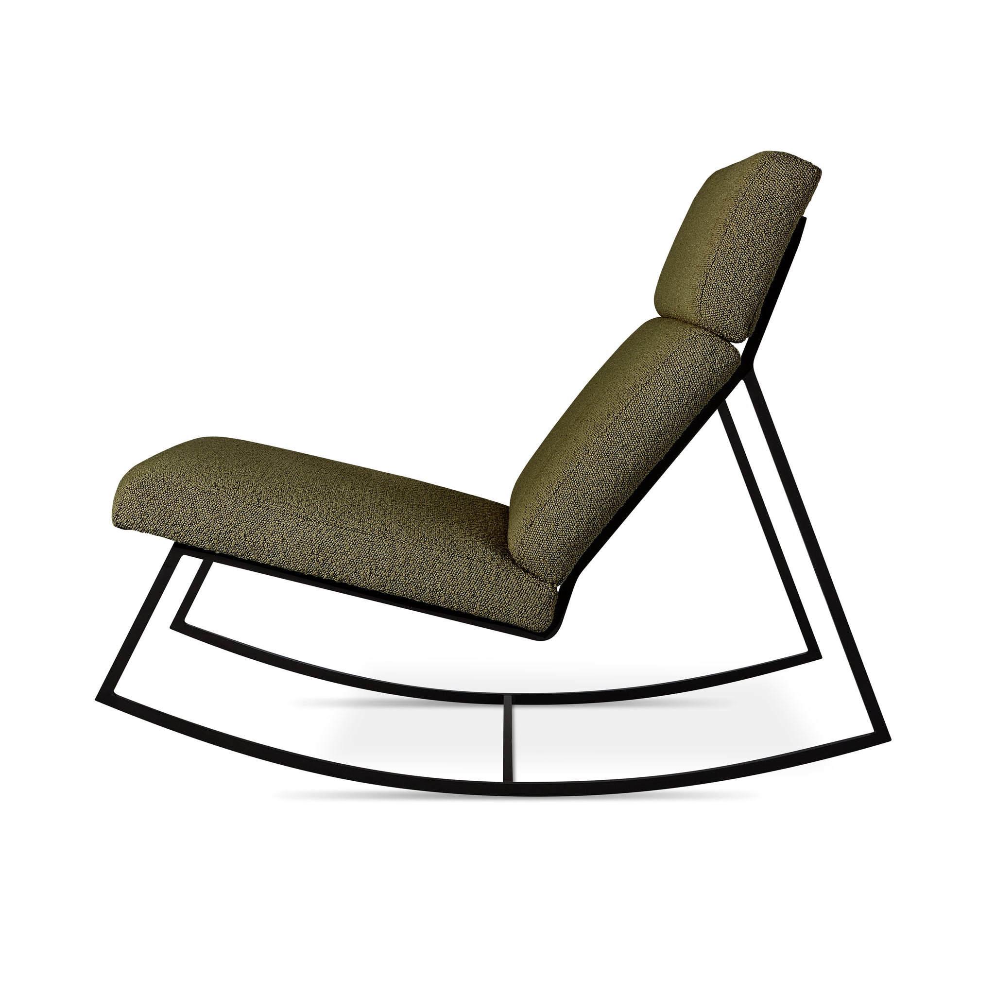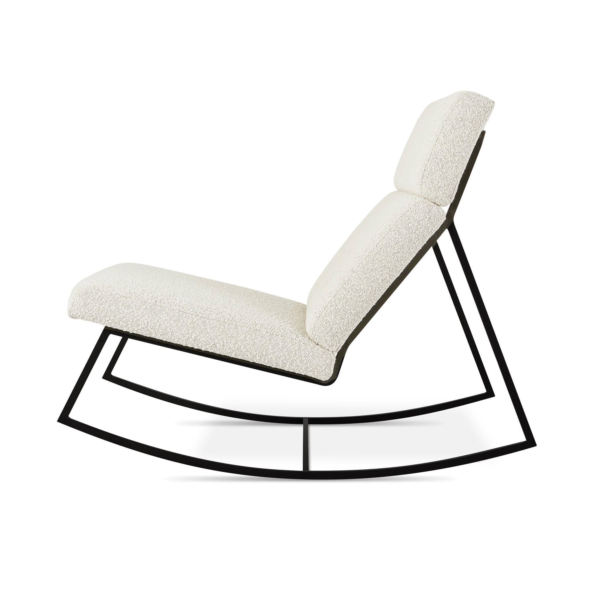 The Gus* version of the perfect modern rocking chair; featuring a powder coated frame with architecturally-styled cushions inspired by airport lounge seating and 70's car interiors. Constructed with 100% FSC®-Certified Wood in support of responsible forest management.