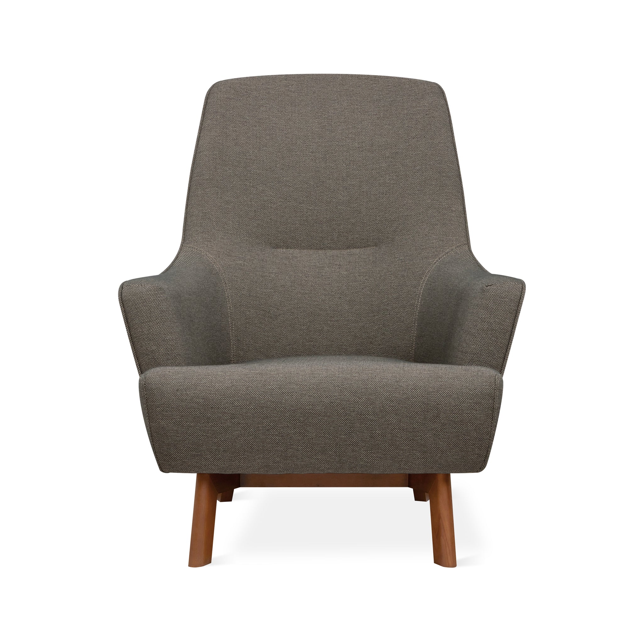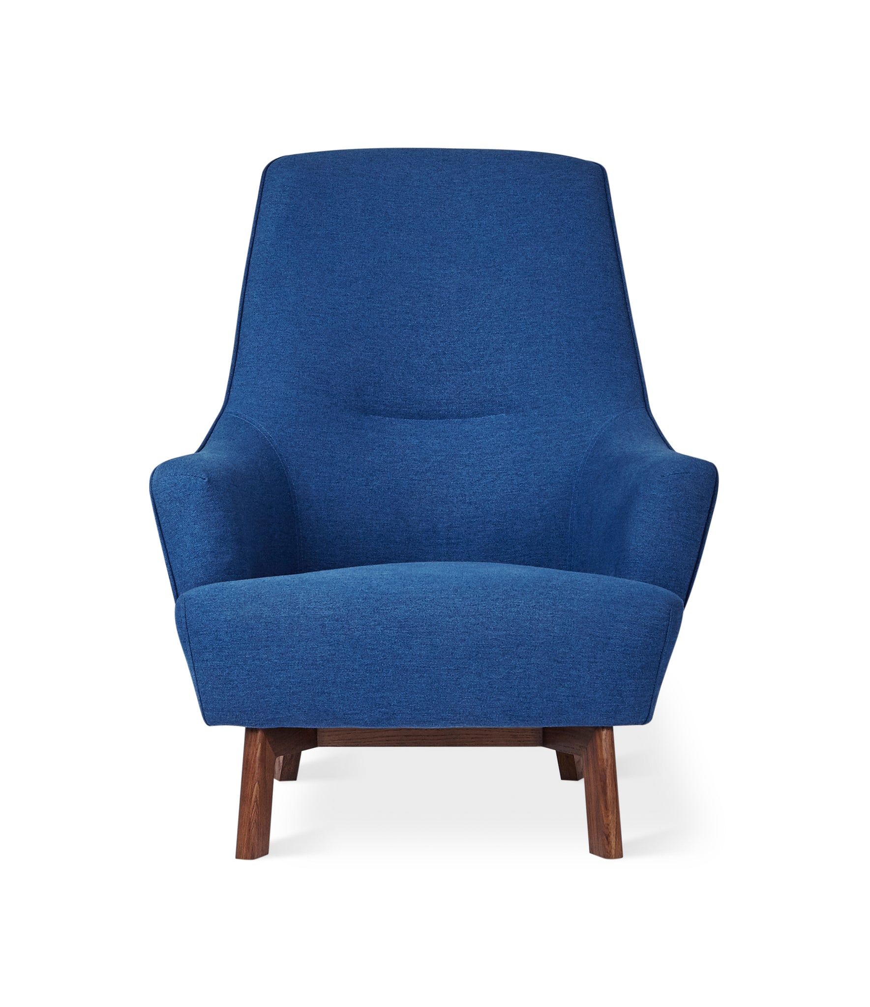 Combining fluid curves and tailored lines, the Hilary Chair is a contemporary take on mid-century Scandinavian style. A channel-stitch detail on the backrest adds subtle interest and unbroken piping along the arms and back emphasizes Hilary sculptural form. With its high back support and splayed angular wood base, the Hilary is designed for relaxing in style. Constructed with kiln-dried FSC®-Certified hardwood in support of responsible forest management, and select fabric is made from 100% recycled plastic bottles, diverted from landfills and waterways, then repurposed into upholstery material.