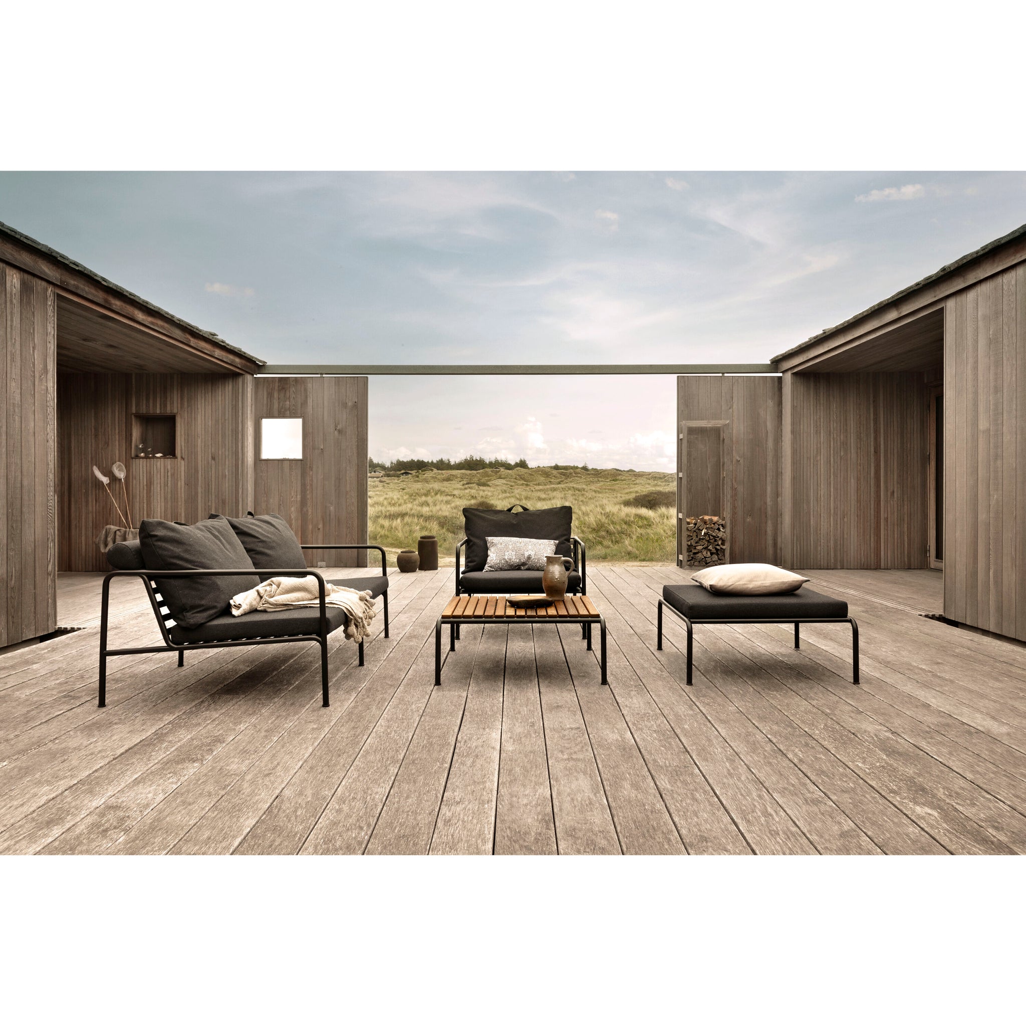 The AVON collection was designed with focus on creating a lounge collection with a very light appearance and a low sleek profile, while maintaining a high level of comfort. The simplicity of the frame, where low lines ensure, that the design always appears stylish, with and without cushions – summer or winter. The handle of the cushions is a statement. It also adds to the function of the product, making them easy to grab and store if needed. UV protected and weather resistant.