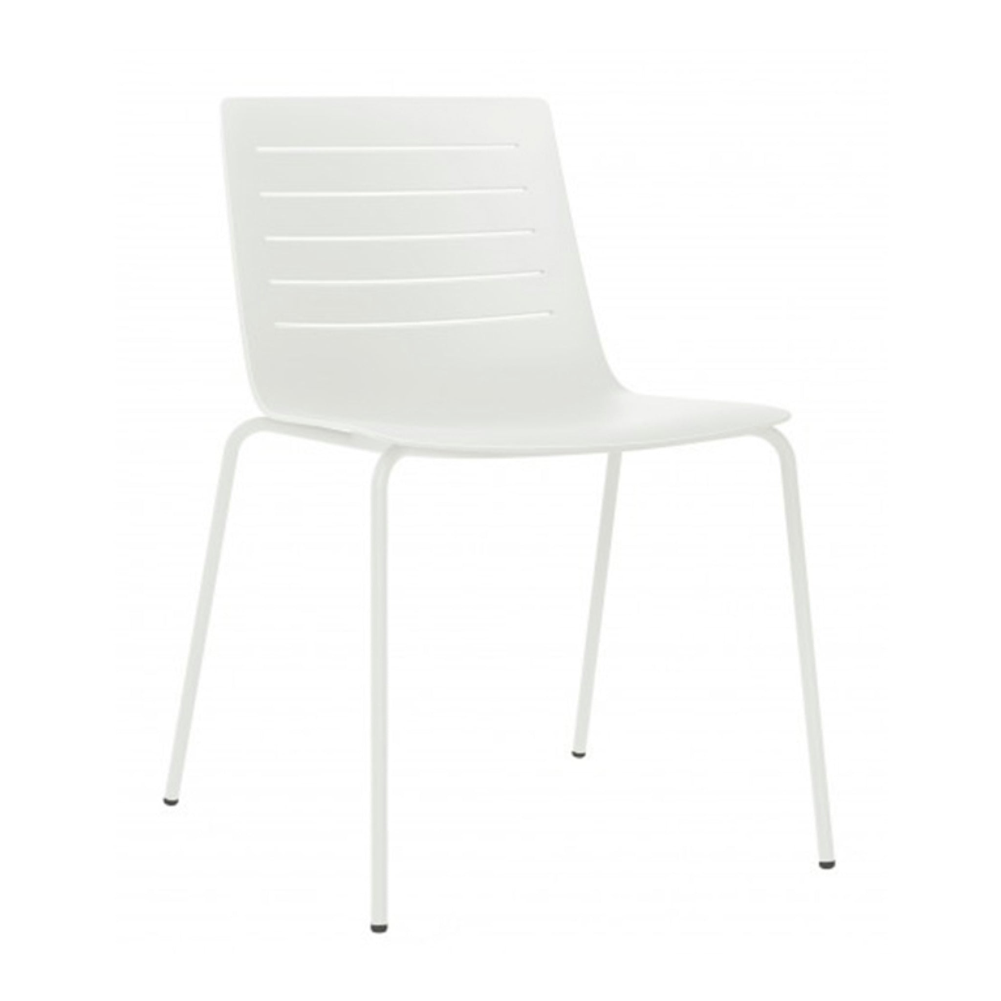 Resol continually strives to offer innovative interior and exterior furniture solutions whilst maintaining a commitment to sustainable production practices. The SKIN chair is for indoor use. The seat is made of fiberglass and polypropylene. Structure made of steel with white or black finishing.