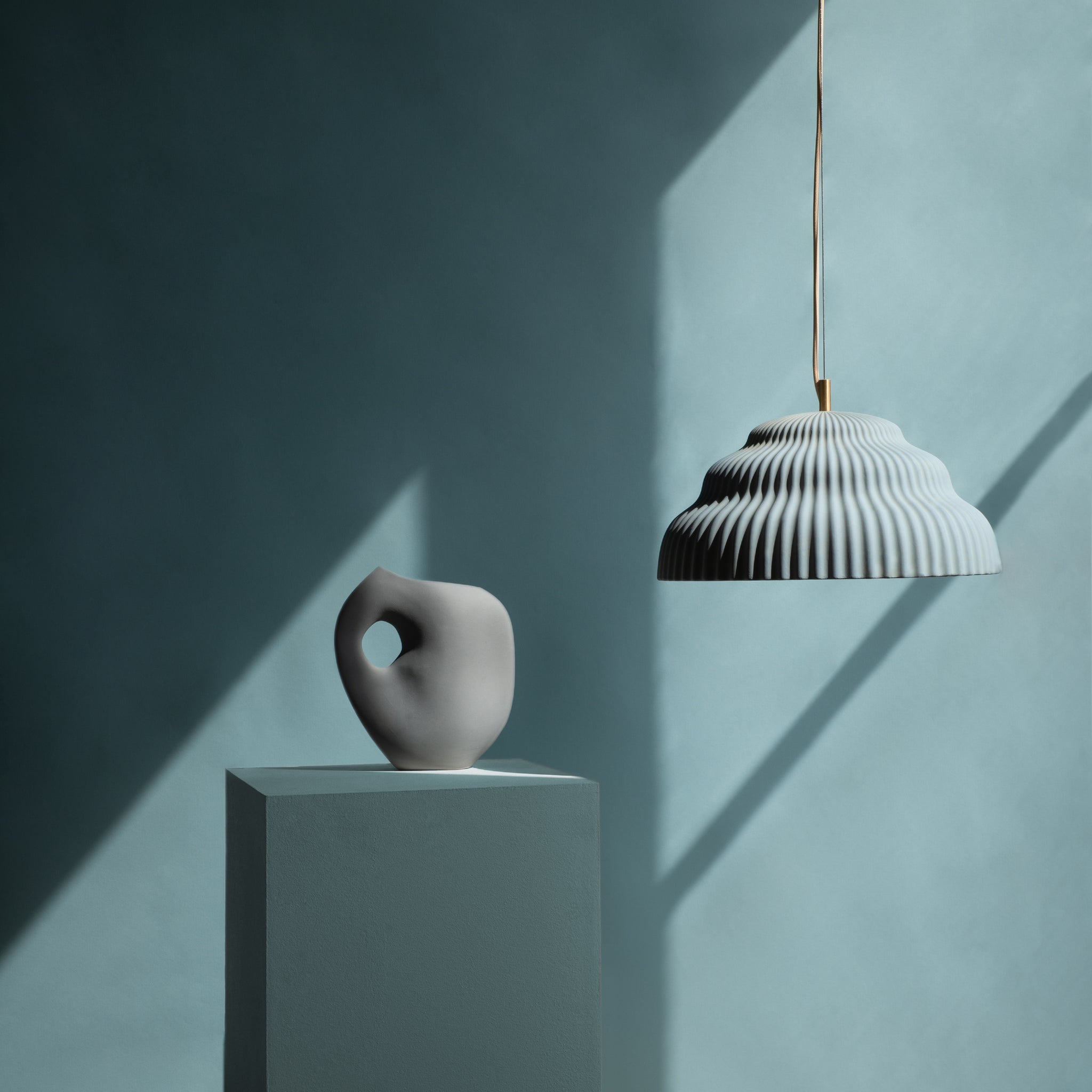 The dynamic between the unexpected material and superb workmanship, with its clear and linear expression, gives this interpretation of an archetypal suspension lamp its unique character. With its three extraordinary and stunning color choices: ‚Light Blue‘, ‚Cloud Pink‘, ,Biscotti‘ and ‚Rust‘ the Kaskad lamp embodies pure aesthetics and a strong visual expression.
