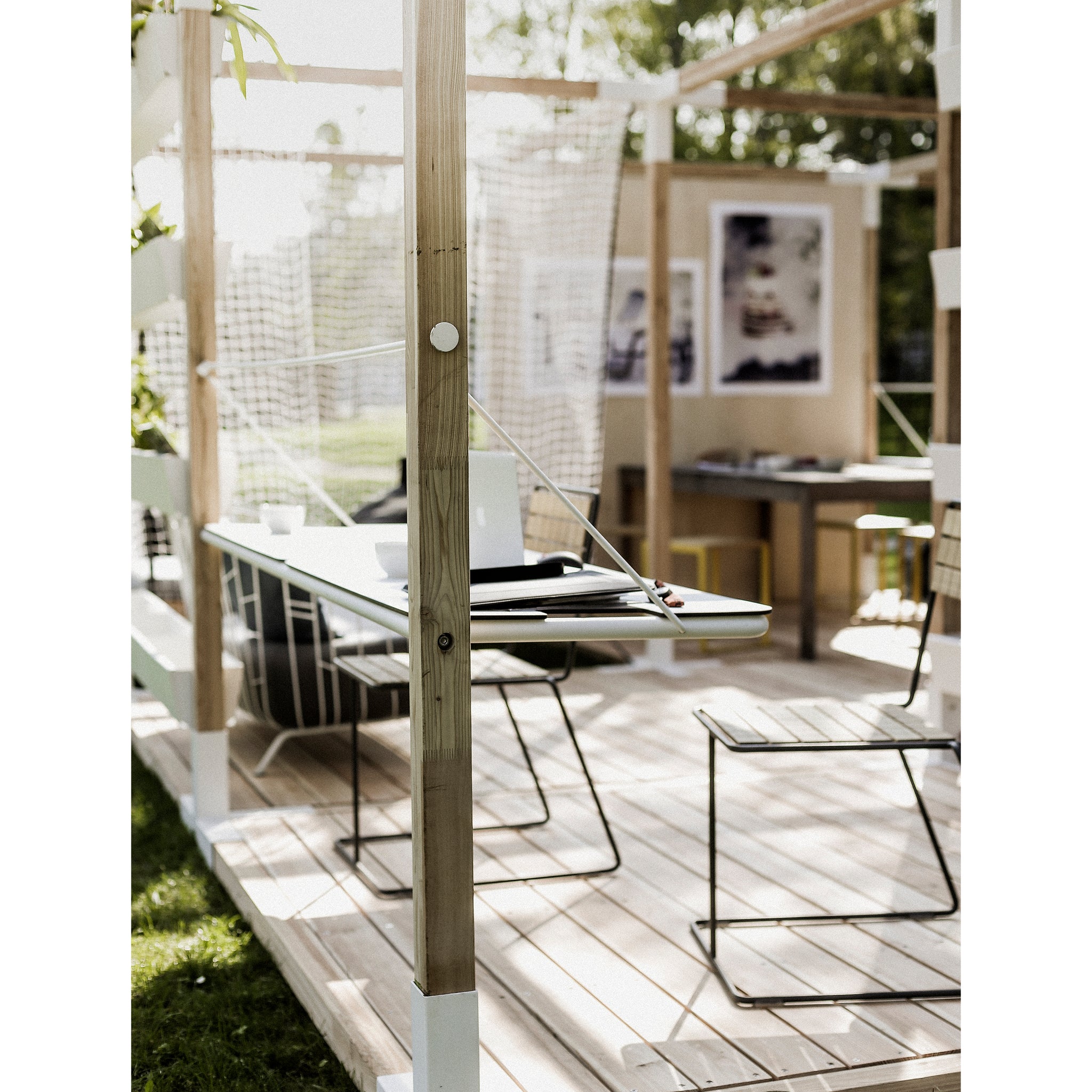 Leva modular system consists of a basic module and accessories. All steel parts are galvanized and finished with a powder coating. The support beams are made of larch.
