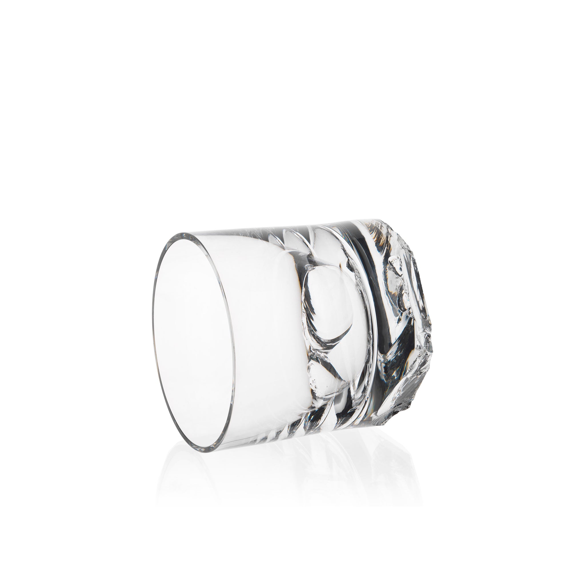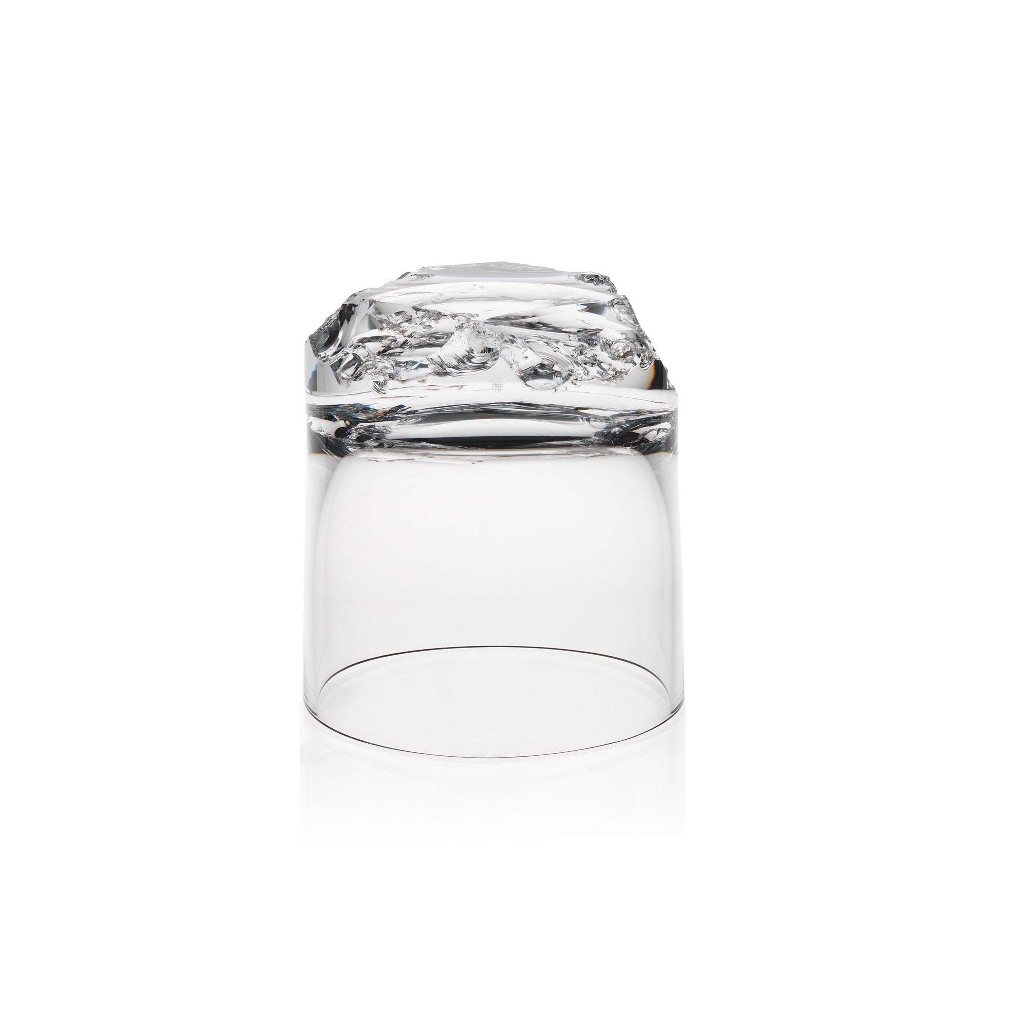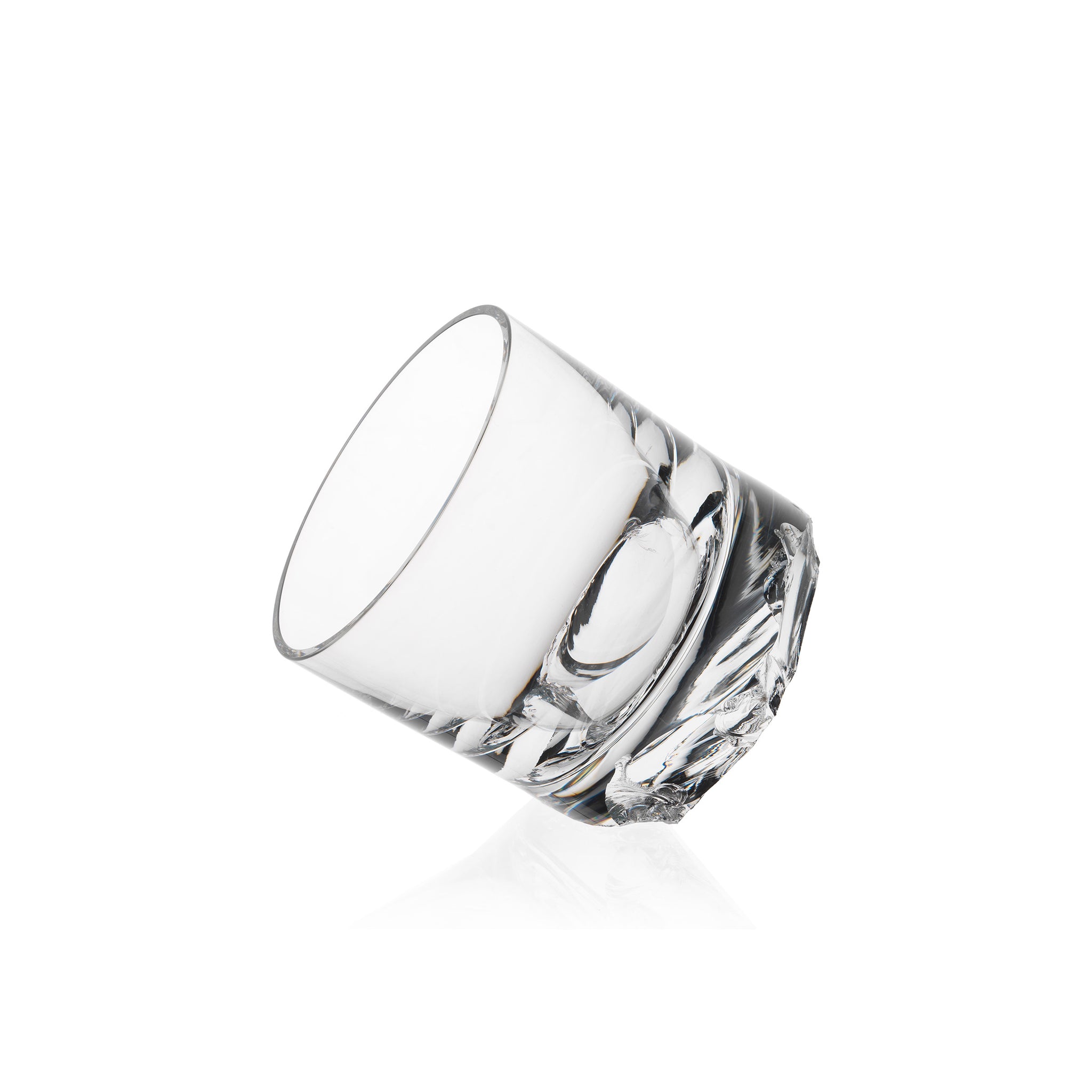 After designing „Captured“, a series of lights, in 2012 for Lobmeyr, Michael Anastassiades is exploring the archaic beauty of broken glass creating the “Flint” tumbler. Inspired by hand axes from flint stone, which are said to be the first human creation and the fact that early glass working techniques have their origin in the way shape stone. Although looking simple the objects demand highest sensitivity from the craftsmen to meet Anastassiades’ and Lobmeyr’s standards. Each tumbler is unique and needs about an hour to be crafted.