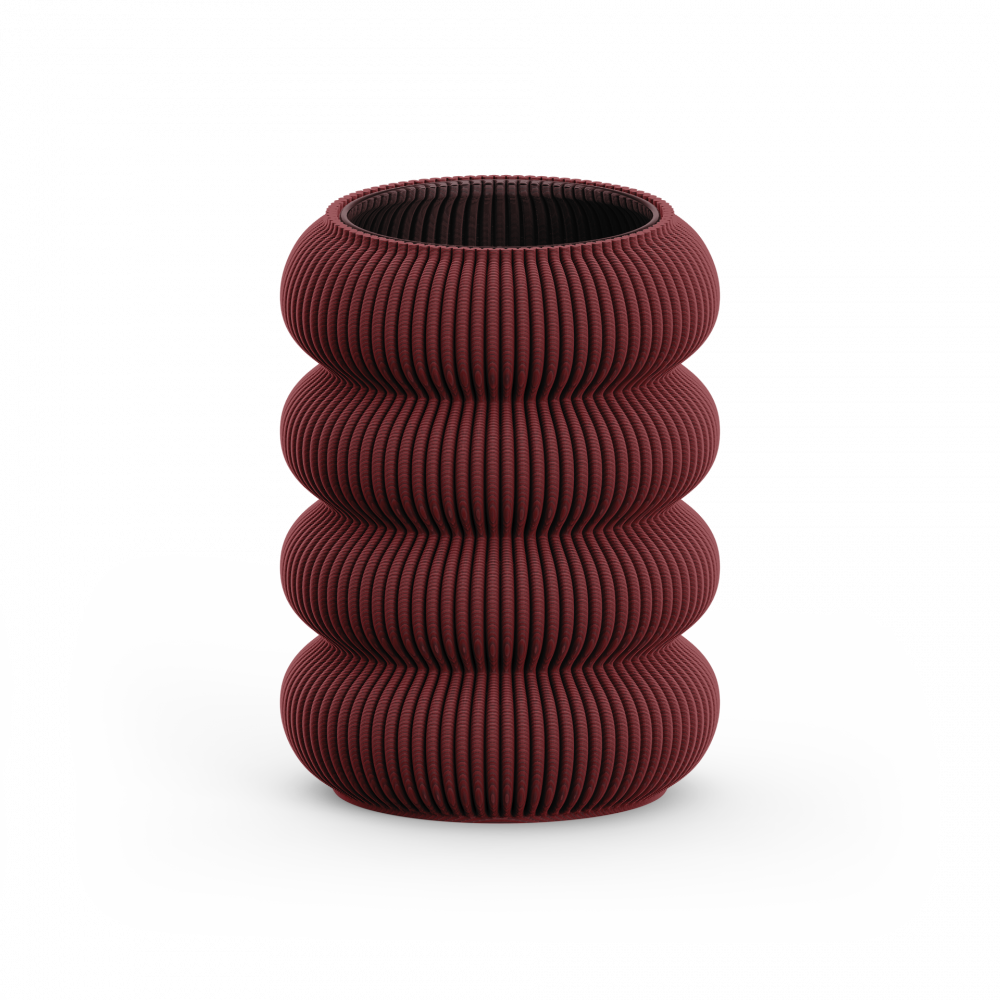 The vase is made out of PLA – ecological compound based on corn which is a 100% recyclable and eco-friendly. The object itself is not watertight but comes with a high-quality glass cylinder.
