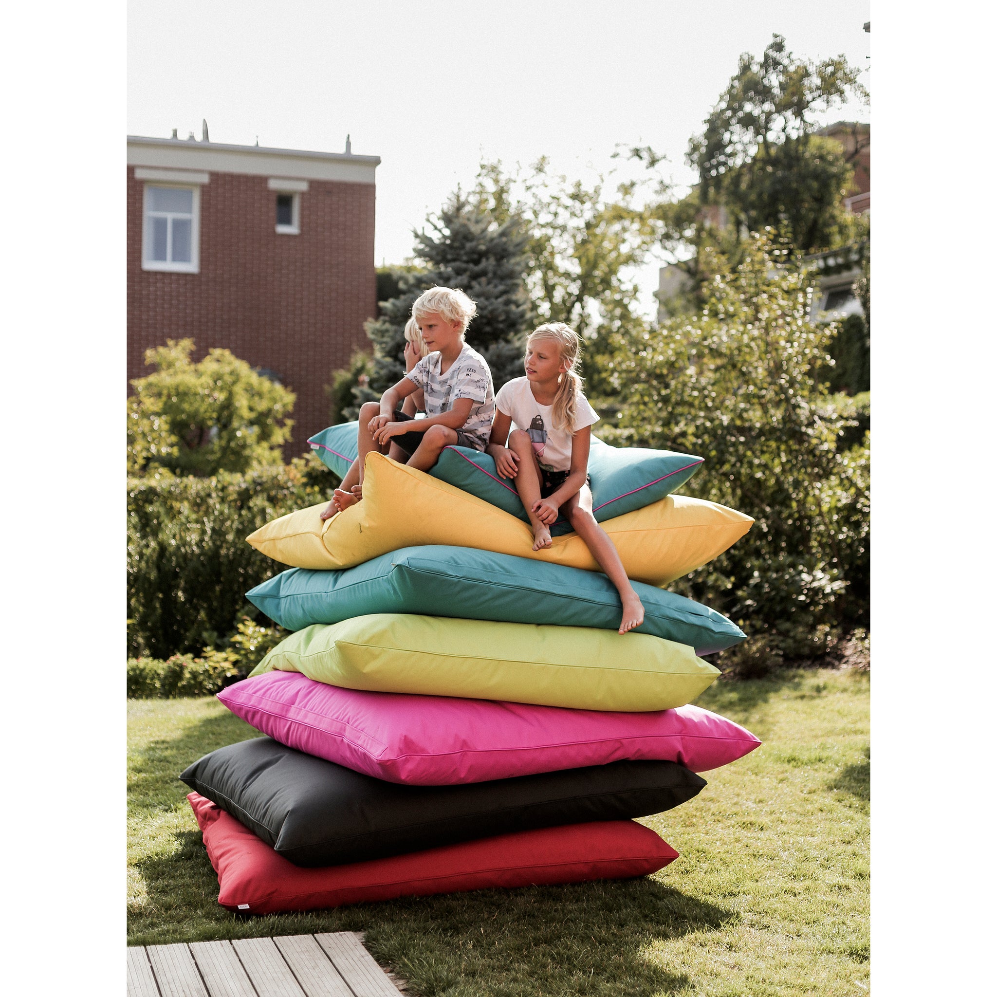 These are not your average bean bag chairs. They can be used for any outdoor activity, and in any weather conditions - whether for work, play or even sit-ups! They are encased in a special fabric called Kortexin, which can take just about anything. Use them to make a tower, shape them into a chair or jump from one to the other. But be careful - the grass is lava! The best way to use them, however, is to stretch out in peace and relish the deep blue sky. Vago bean bag chairs come in many sizes and colors, all with elegant trim around the circumference. For a start, you can try the 9- or 30-liter bags. Or, for those who want a little more volume, we've even got 250- and 350-liter bags.