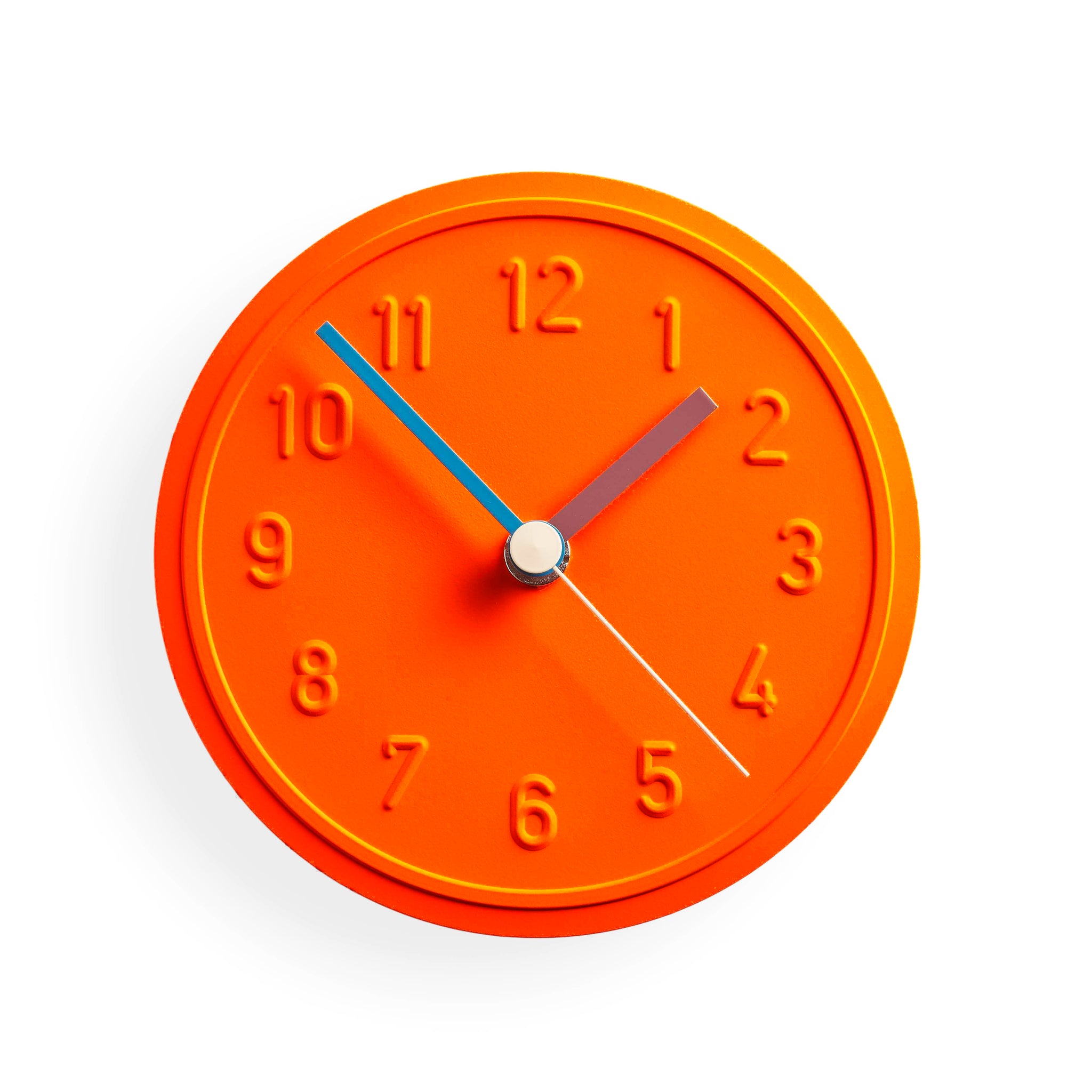 2012, we asked Alexander Seifried to flavor the clock with cool colors. This resulted in four colors, which complement each other on the clock face and hand. On top of that, the numerary are not silhouetted by different colors, which makes the clock look distinctly different.
