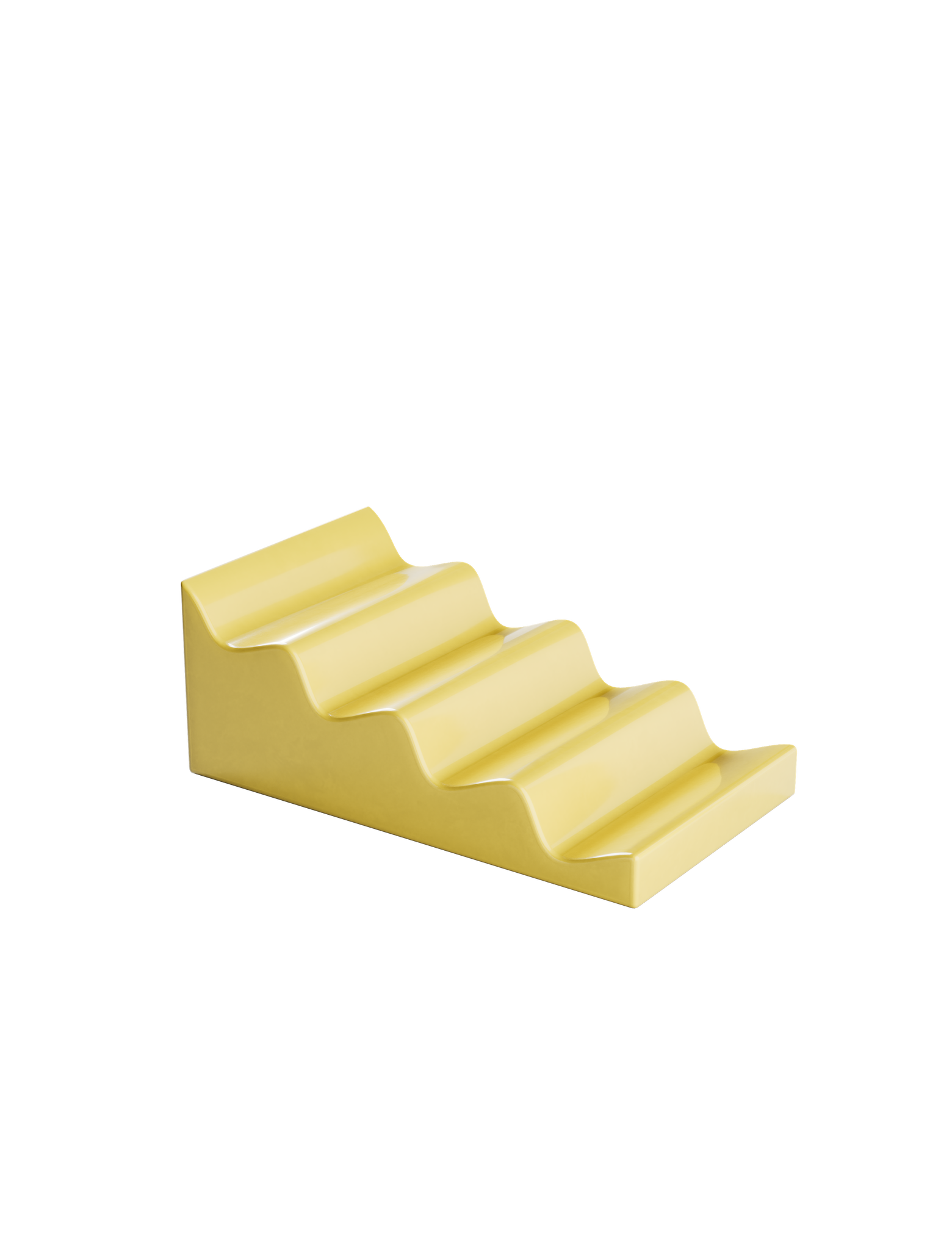 CASCADE Fruitstand yellow glossy ceramic stand with stepped design for organizing fruits and vegetables without bruising.