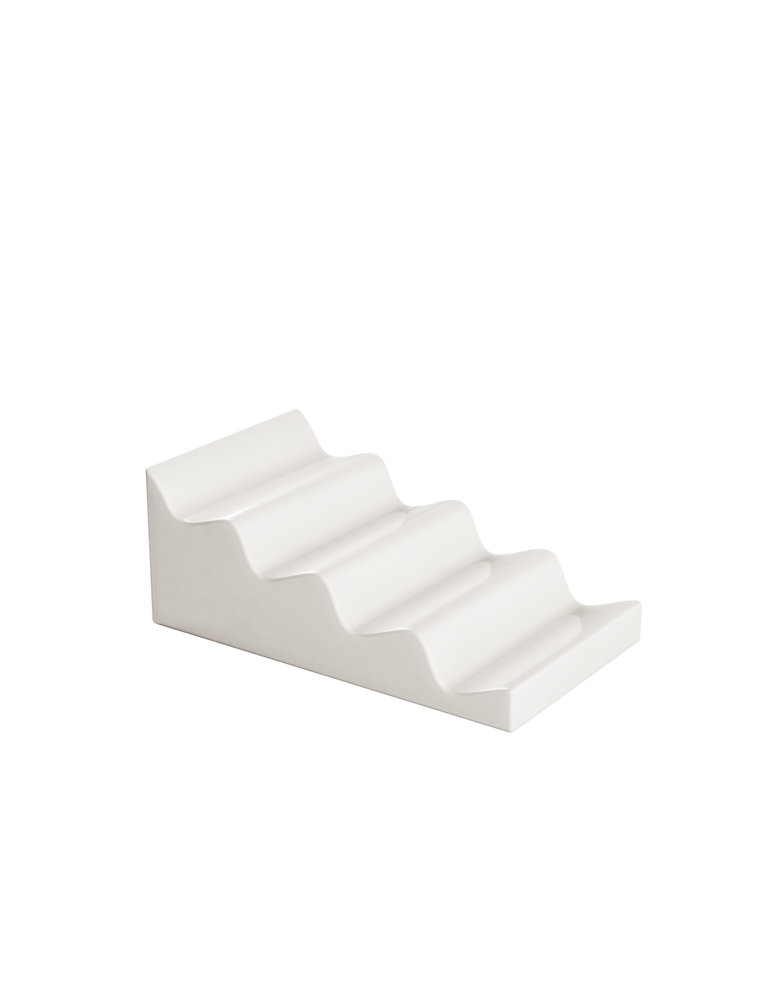 CASCADE Fruitstand white glossy ceramic fruit stand with wavy slots to keep fruits and veggies separated.