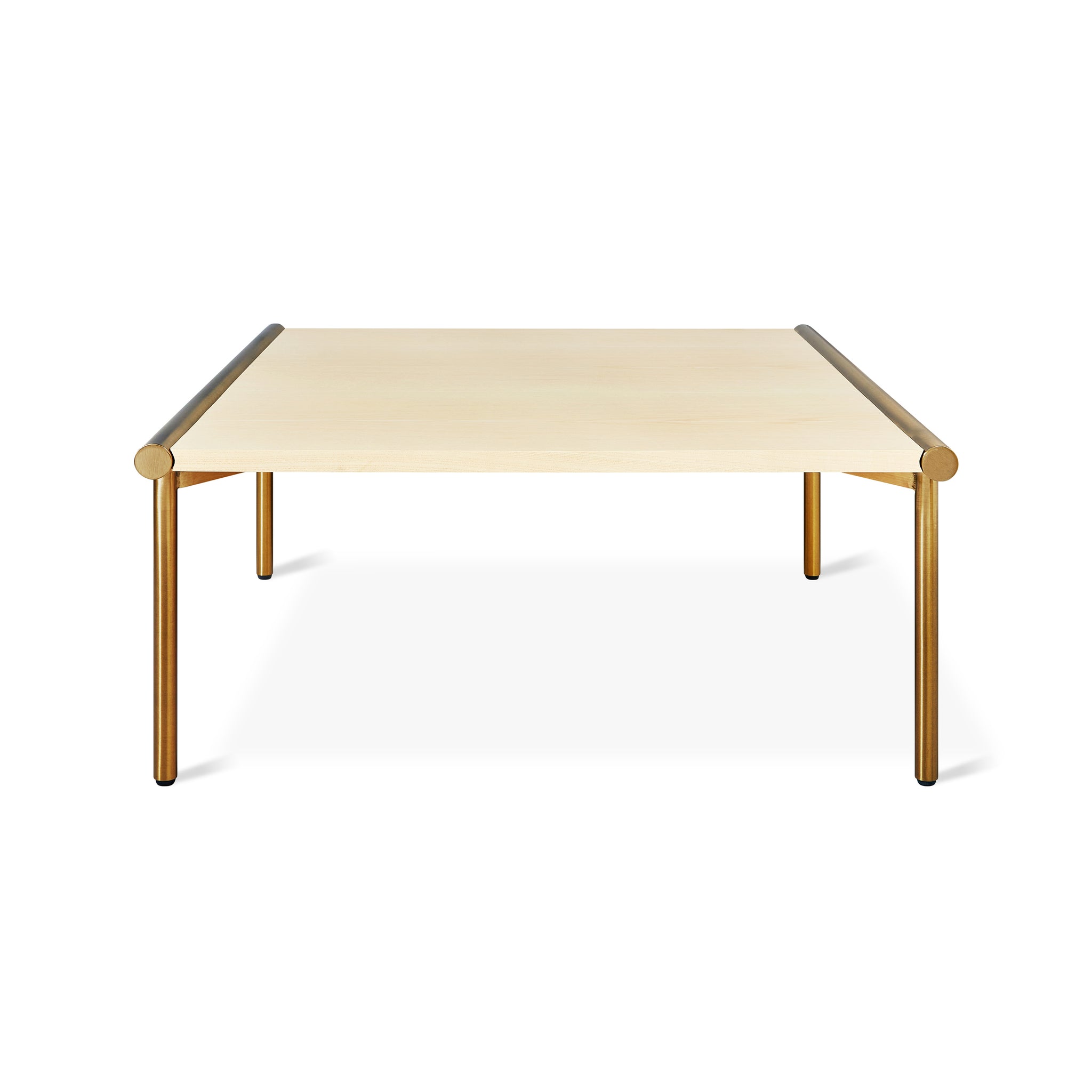 Bauhaus-inspired design gets a contemporary update with the Manifold collection. Featuring elegant, clean-lined tables that can stand alone or nest together, the well-considered silhouettes optimize space with innovative design compatibility. The square coffee table serves as an ideal companion for sectionals or a grouping of armchairs, bringing people together for meaningful interaction. While the tabletop provides ample space to spread out, the slender metal legs contribute to an overall light, sleek aesthetic. Available in two combinations—Blonde Ash with Brass or Walnut with Pewter – each with the promise to elevate your space.