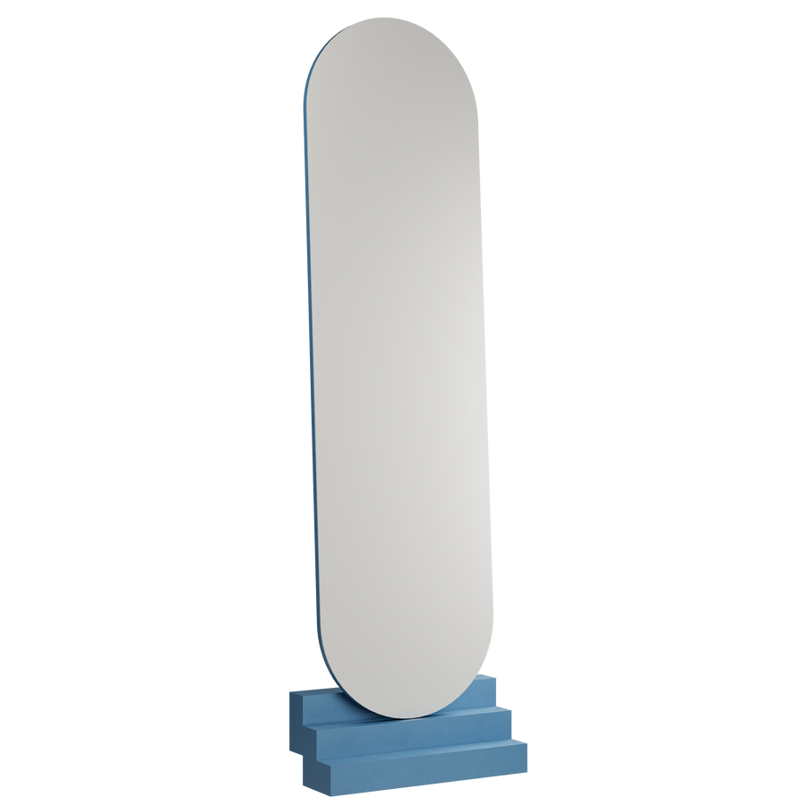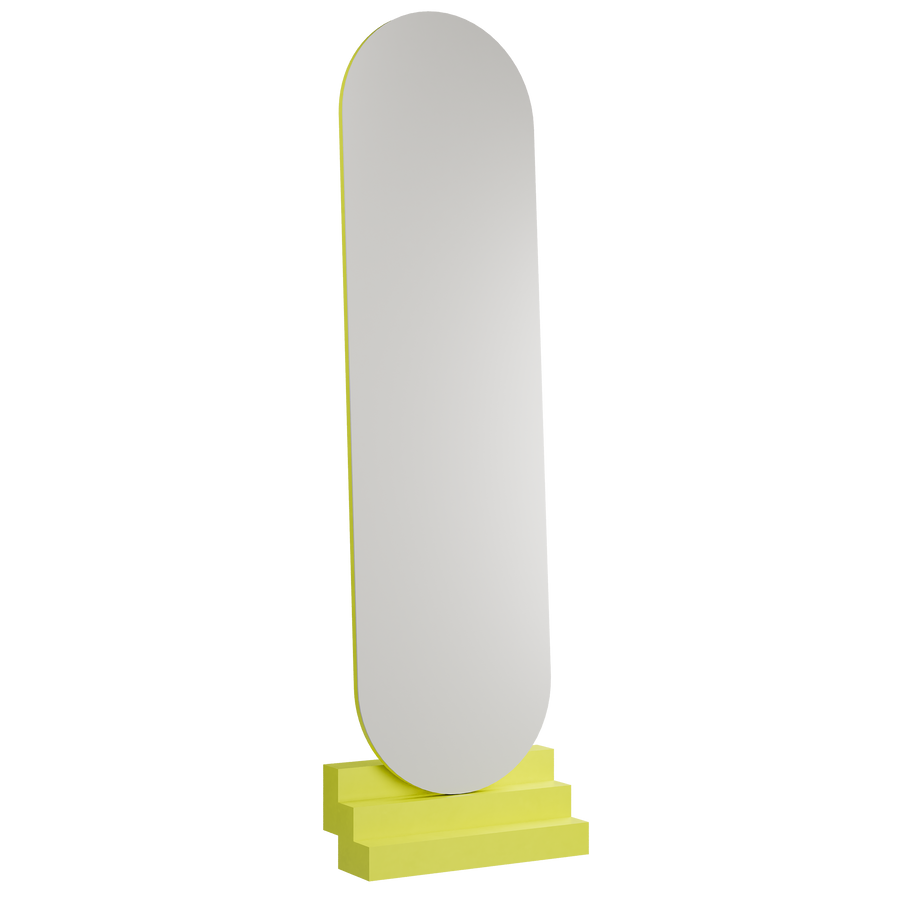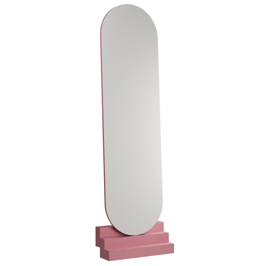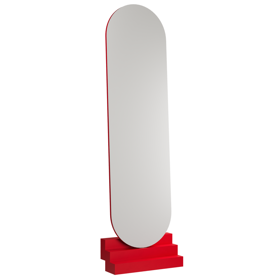 The NONCHALANT Mirror appears to lean effortlessly on its stairs, though securely wall mounted. Available in seven refined monochrome finishes.