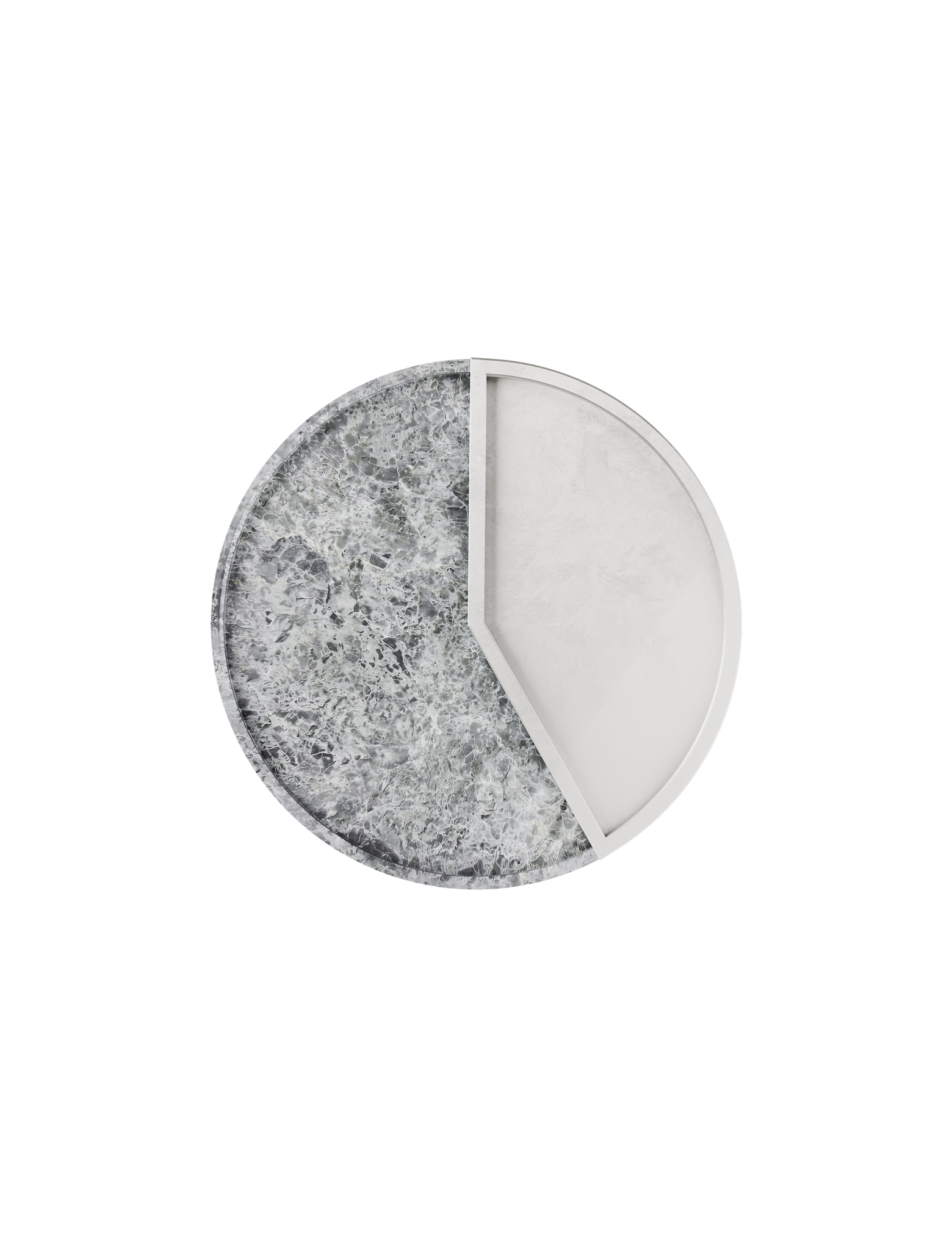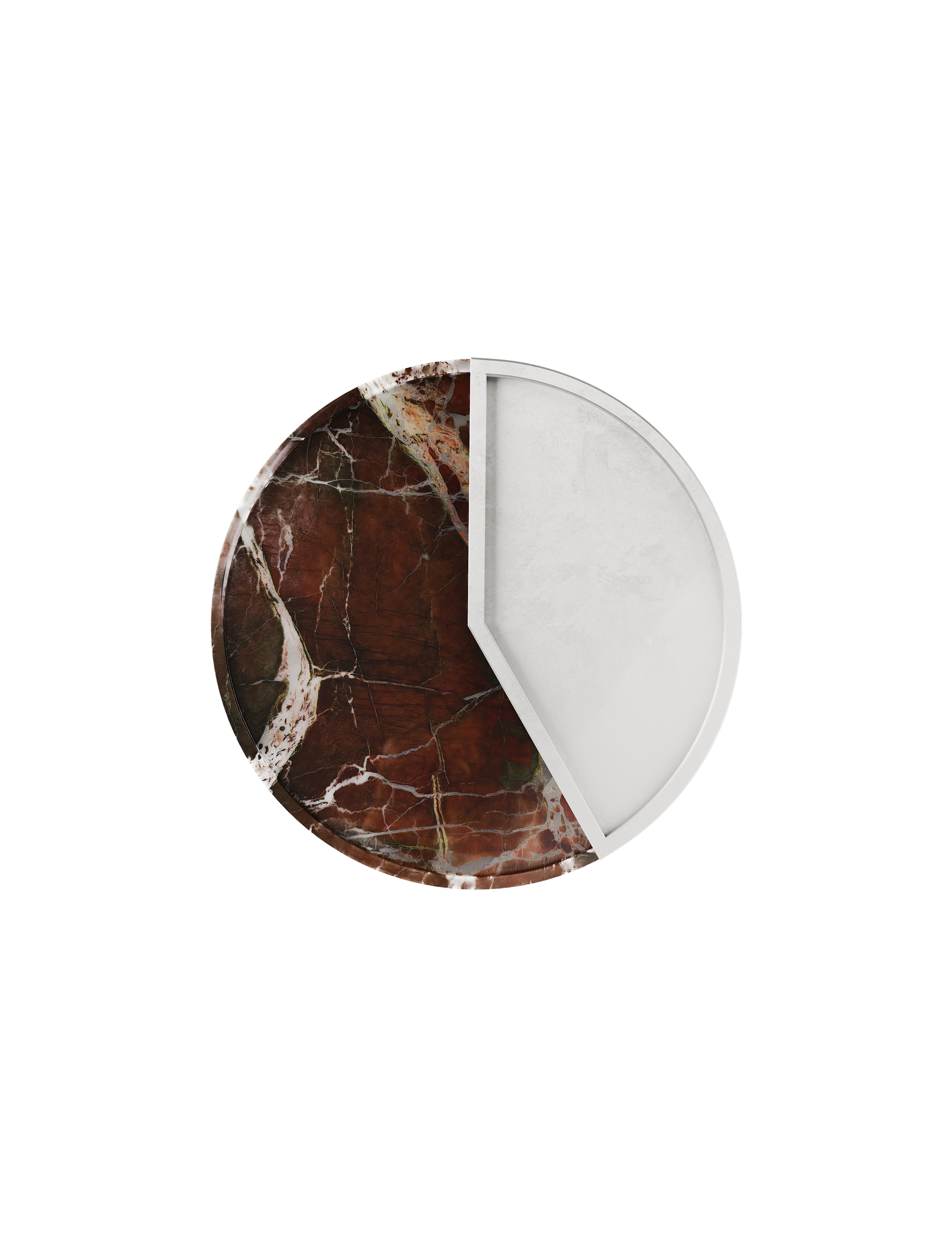 A moment captured in design. The 5 O'CLOCK tray pairs a round marble base with a lacquered aluminum inlay, marking 5pm. A refined companion for drinks, small bites, or whatever your after-hours ritual may be.