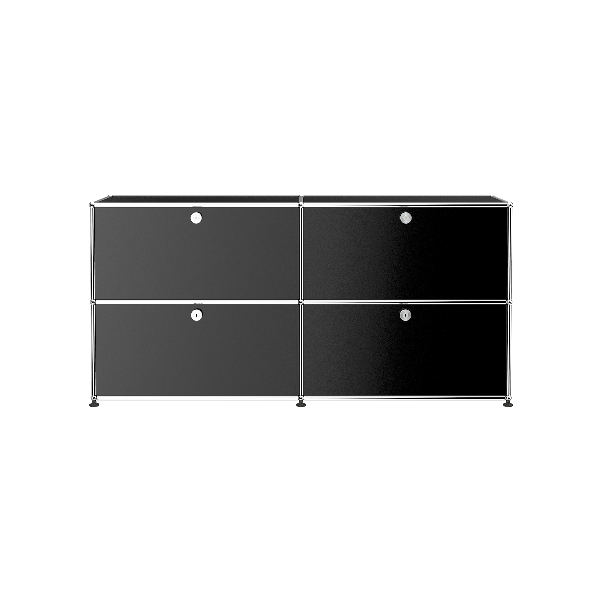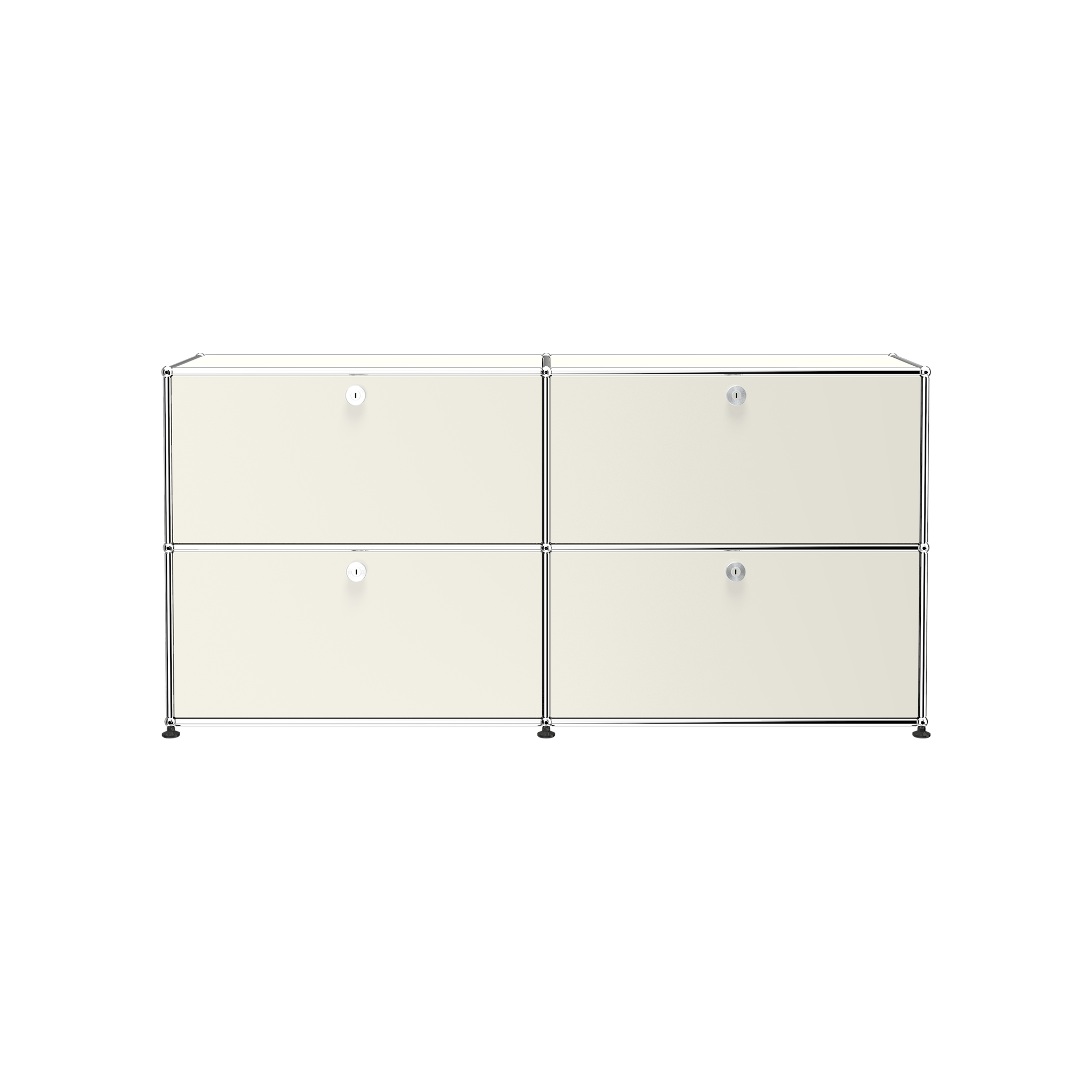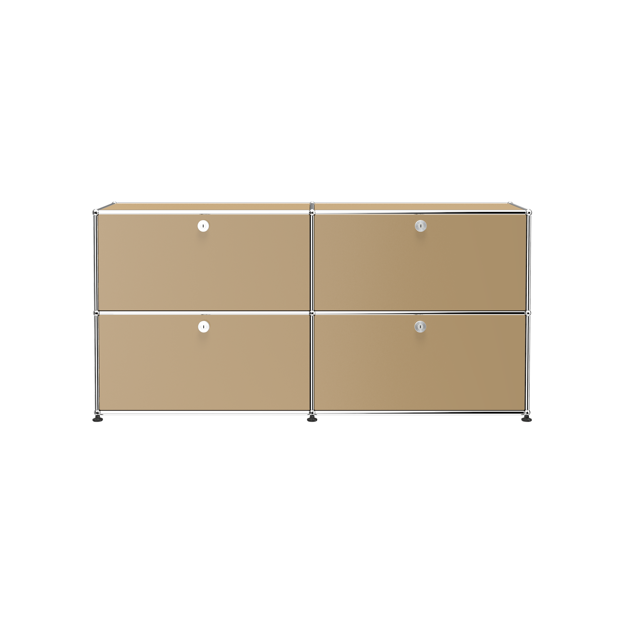 A timeless and versatile storage credenza with four 14"H drop down doors that lock with the twist of a coin.