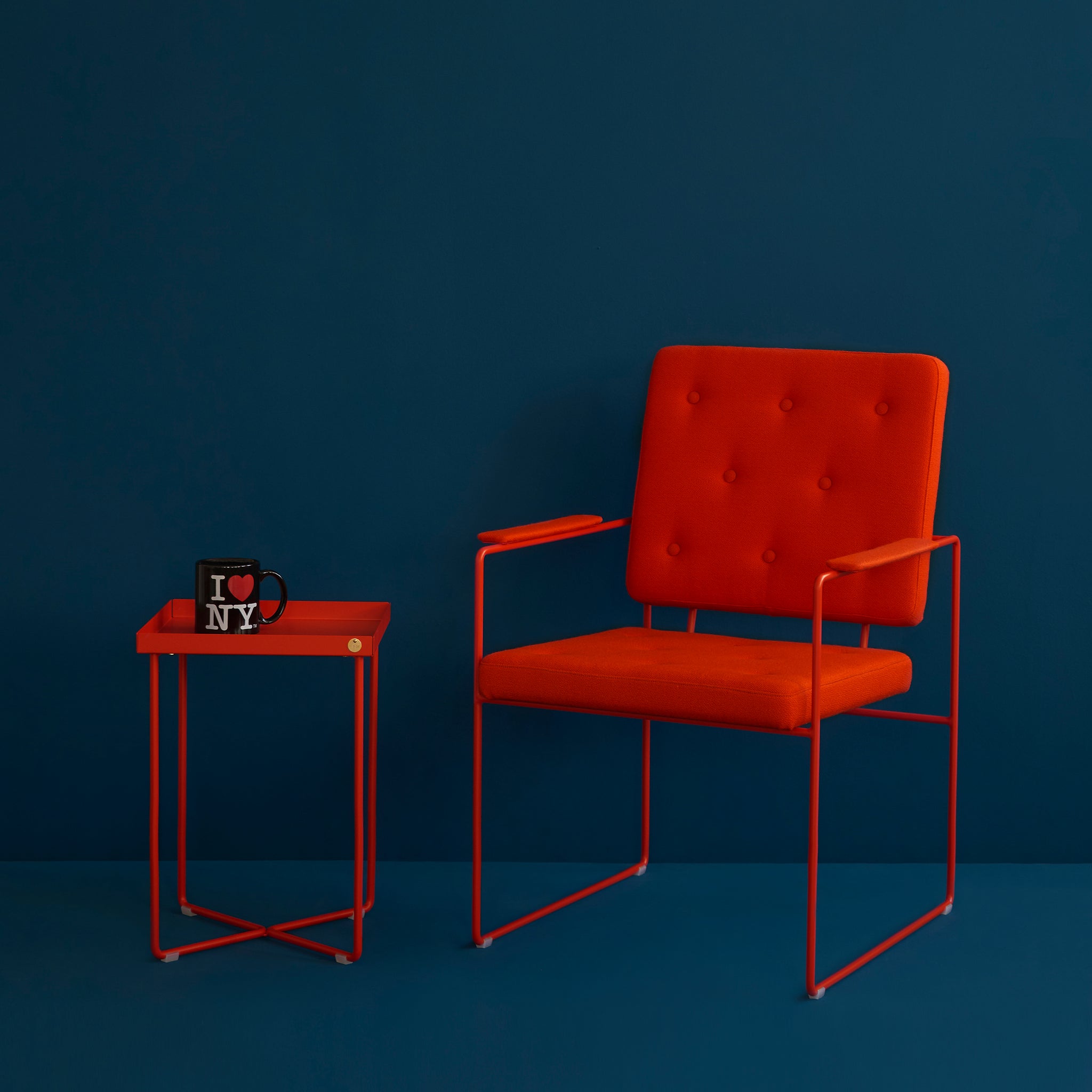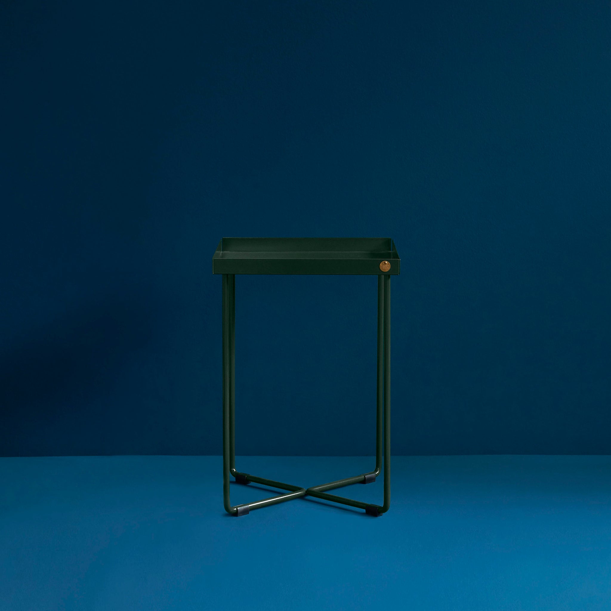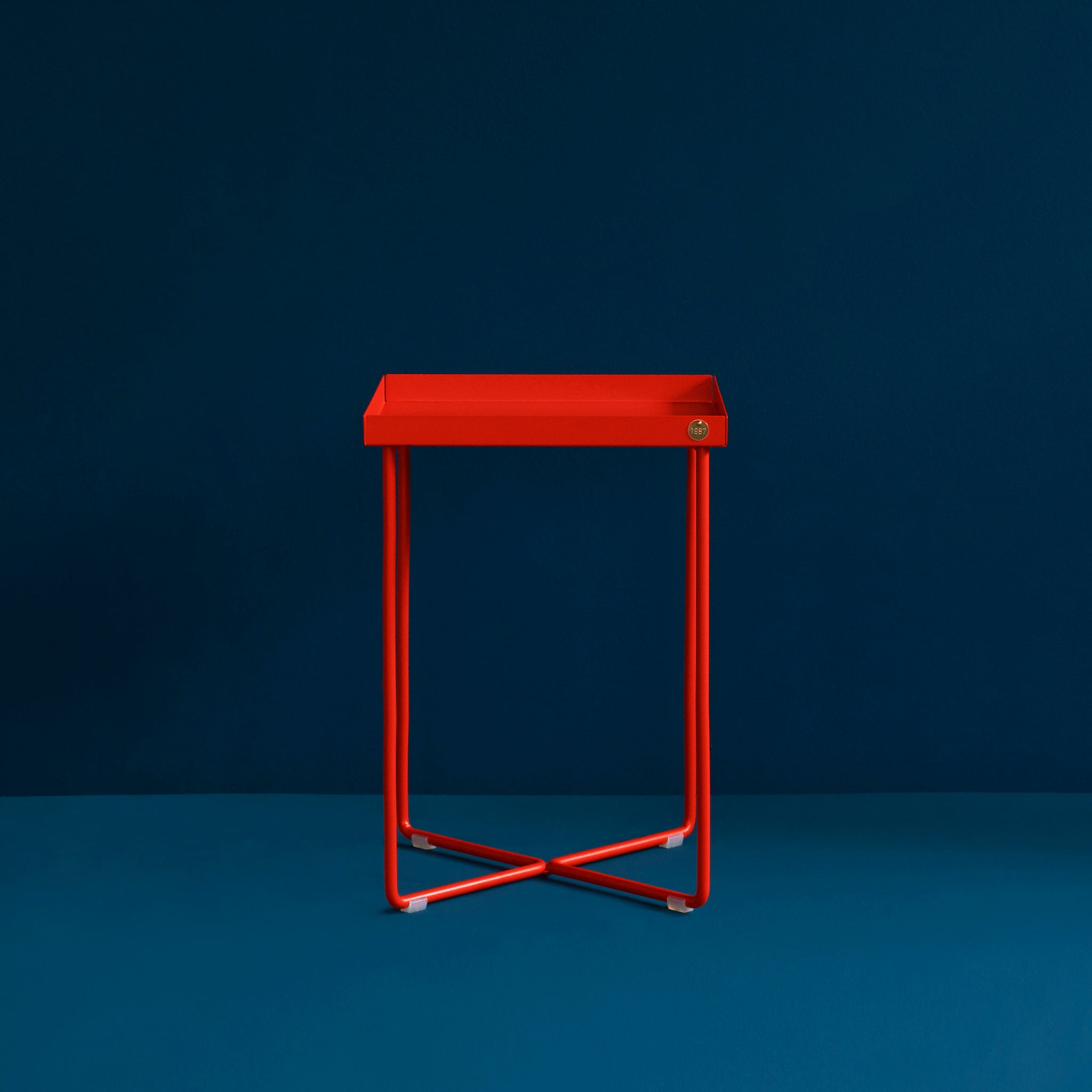 POI Mini Table consists of two identical parts which reflect each other and are welded together. The steel frame is bent by hand. The tray is fixed invisibly to the frame. The POI Table Mini works as a side table or bedside table. Available with or without leather inlays.